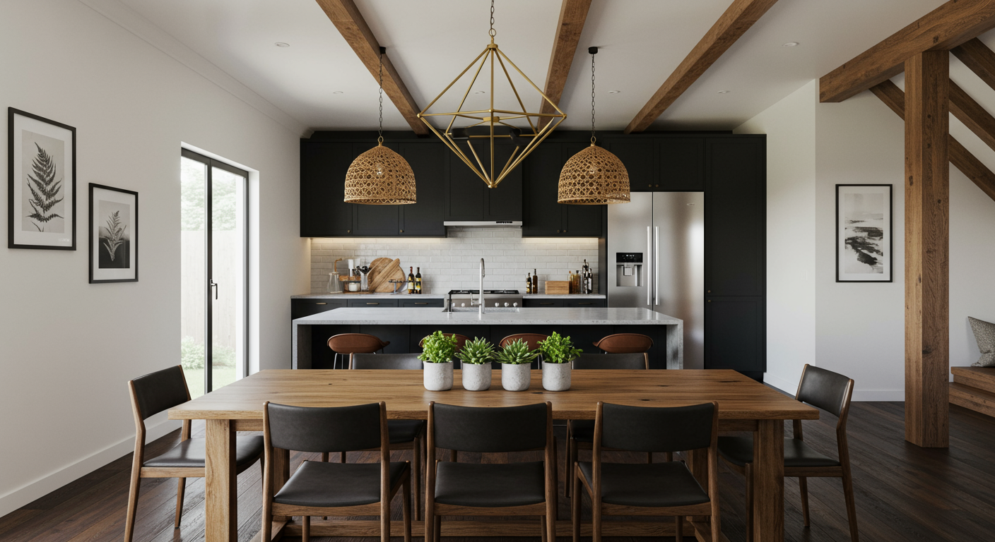 According to interior design trends from Coveteur and other sources, a major trend for fall 2021 within the kitchen will be an emphasis on statement lighting. In the past, homeowners selected simple recessed lighting or under cabinet lighting as the main source of light in their kitchens, but for the new season buyers and prospective homeowners will be looking for kitchens with statement pendant lights, rustic chandeliers, and even industrial looking light fixtures to add an extra pop of interest to the space. In addition to the eye-catching light fixtures that will be seen in kitchens this fall, you’ll also start to see an emphasis on whimsical and rustic elements. This means less bright white cabinetry and more exposed wood grains, dark stained wood elements and even bold statement facet fixtures to highlight a darker palette.